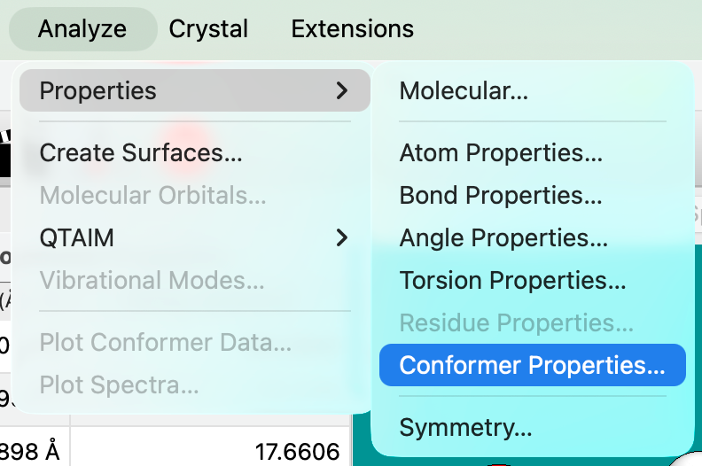 The RSMD column will indicate the root mean squared displacement of atomic coordinates (in Å) compared to the first geometry. The Energy column will indicate the relative energy compared to the lowest-energy conformer.