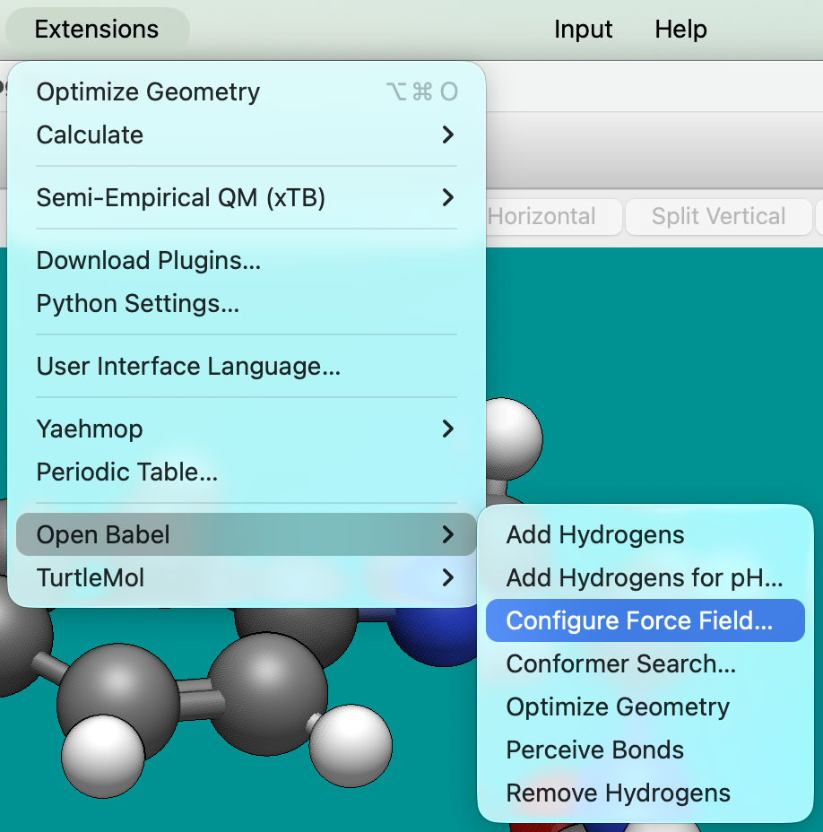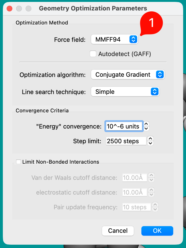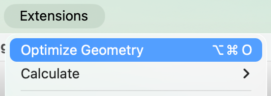 Before finding a low-energy conformer, we should make sure the current geometry is at least a near-optimal geometry. Perform an “Optimize Geometry” for a quick clean-up.