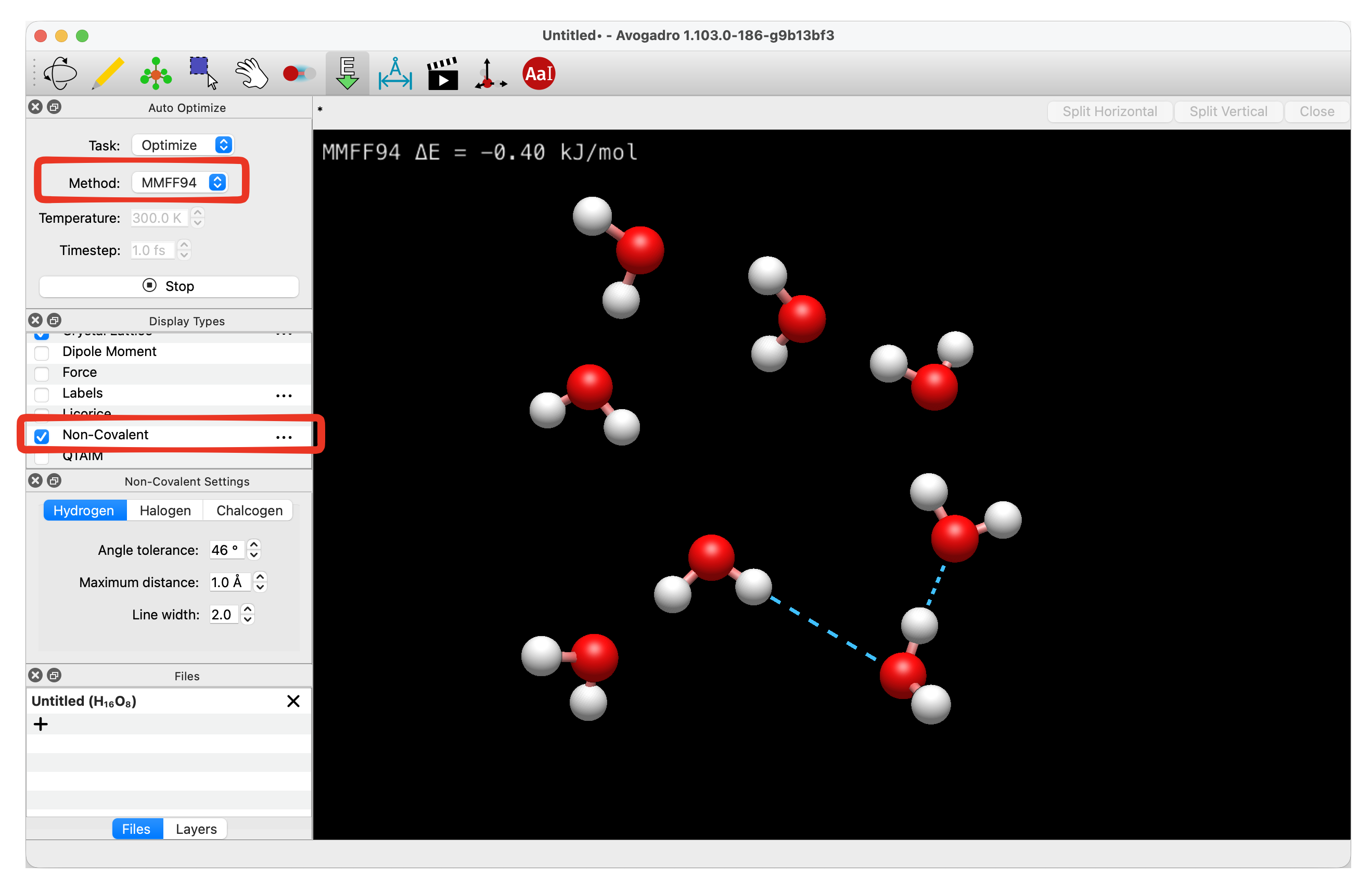 These force fields also add electrostatic charges, and hydrogen bonds (displayed below).