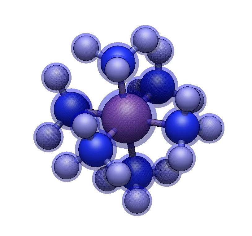 Now we’ll build [Ni(en)(NH₃)₂]²⁺, which combines a bidentate ethylenediamine with two monodentate ammine ligands. We’ll also explore how the same ligand set can adopt different geometries.
