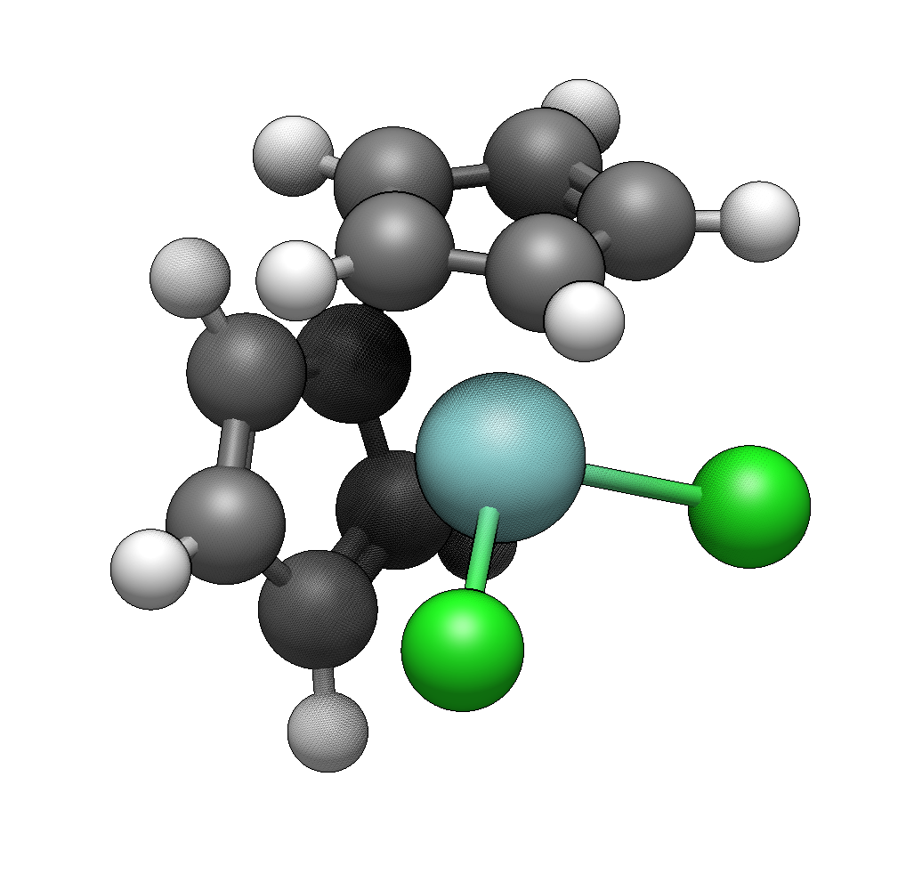 Finally, we’ll build a Ziegler-Natta type catalyst precursor: zirconocene dichloride (Cp₂ZrCl₂). This demonstrates haptic ligand attachment and mixed ligand types.