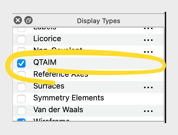 Initially, you may not see anything different. QTAIM includes a separate Display Type for viewing the results of the AIM analysis.