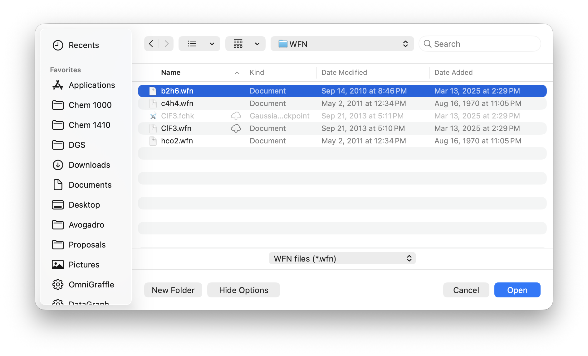 Here we’ve picked a WFN file of interest (b2h6.wfn) using the Molecular Graph + Lone Pairs command.